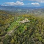 Farmhouse fixer-upper for sale on the Valdarno hills between Arezzo and Florence, close to the medieval town of Ambra. The property includes a collection of rural buildings totalling approximately 497 sqm. This includes a 350 sqm farmhouse and two agricultural outbuildings (147 sqm), which can be converted into small guesthouses. The property sits on 44.9 hectares (110.9 acres) of mostly wooded land with several olive trees near the house.