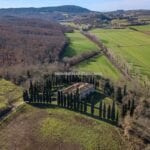 There are a total of 3,000 square metres of garden space, 3.3 hectares of arable land (with the potential to restore the old vineyard), and an additional 3.3 hectares of mixed woods (2.9 ha). The trees around the farmhouse not only contribute to the estate’s characteristic Tuscan appearance but also provide seclusion and calm.