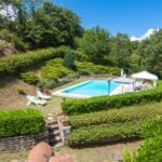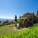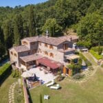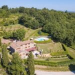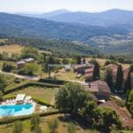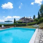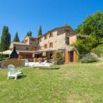 Stunning stone farmhouse with private pool, park and annexes with great views from its panoramic position on the border between Tuscany and Umbria.