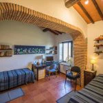 The farmhouse (440 sqm – 4,734 sqft) was built at the end of the 19th century using stones and tuff bricks. Originally, the ground floor housed stables and storage rooms while an external staircase led to the living quarters on the first floor. Renovations allowed the conversion of the ground floors into living accommodation, and the farmhouse is now organized as follows: