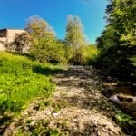 Bordered by a gentle stream, the estate includes a 292-square-metre (3,142 sq ft) former mill, spread across three levels, divided into two separate dwellings, with additional cellar and storage spaces on the ground floor. Alongside the mill, the property features former stables (120 sqm – 1,291 sq ft), which could, if wanted, easily be transformed into guest accommodation. There is also a 100-square-metre (1,076 sq ft) ruin on the property, offering the potential for reconstruction.