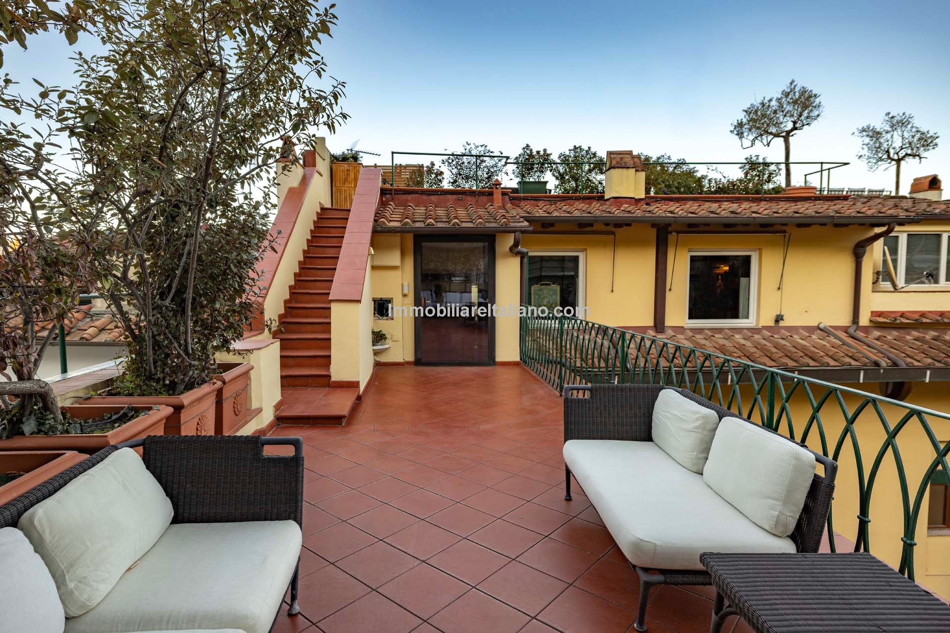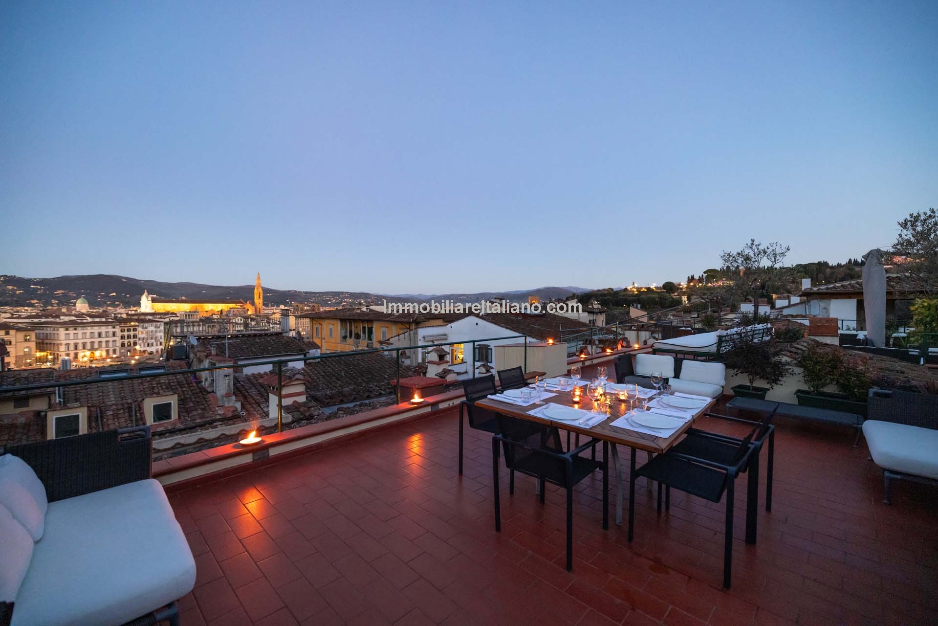 At the top of the building, a large panoramic roof terrace of approximately 190 sq m provides open views across Florence’s historic skyline and toward the Giardino Bardini. This outdoor space significantly enhances the property’s appeal for both private use and high-end rentals in the Florence market.