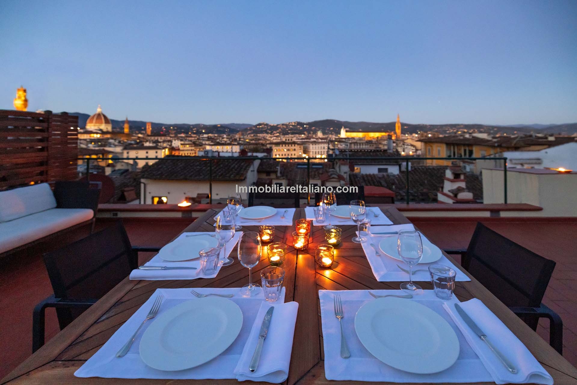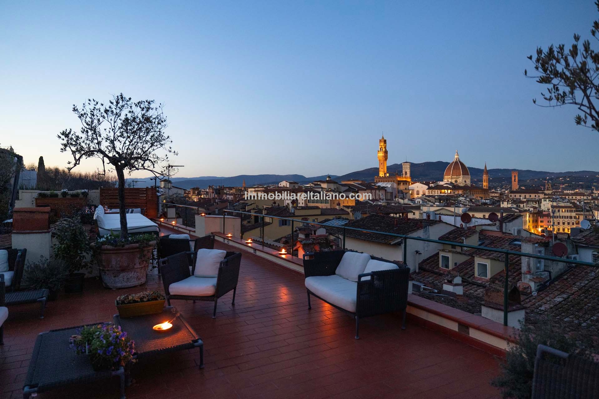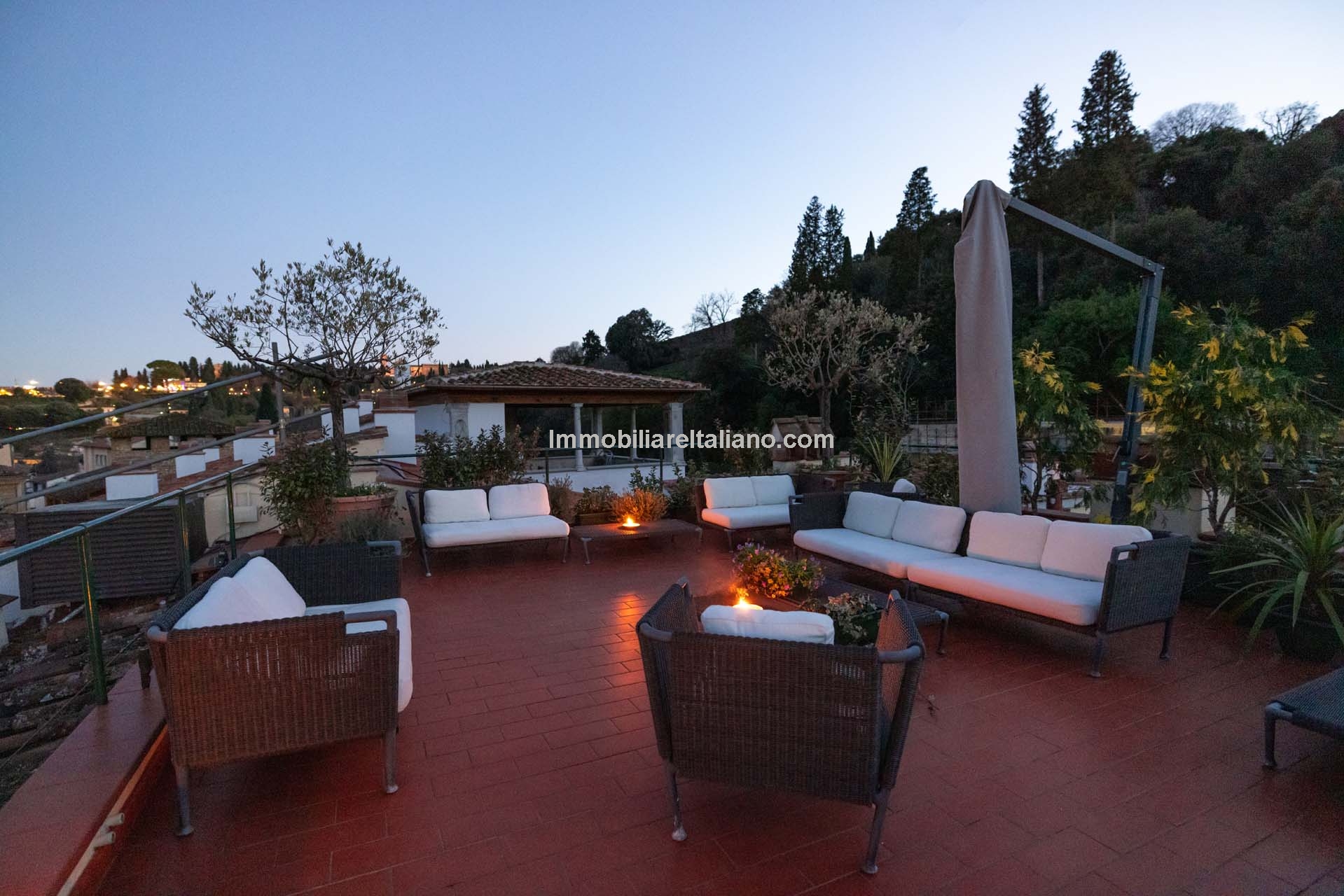 - MAIN FEATURES: Parquet flooring, huge windows, vaulted ceilings, frescoes, bossage, private garage, elevator, video-surveillance and alarm system, panoramic terrace, views of the historic centre of Florence