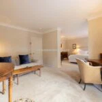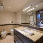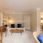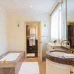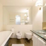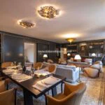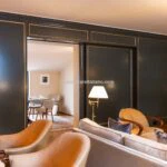 Apartment Vasari (257 m², 3 bedrooms and 4 bathrooms): located opposite the Donatello apartment, this unit opens onto a large reception hall, with a small service bathroom. From here it then leads to the dining room with a kitchen and three large bedrooms, all with private bathrooms.