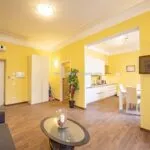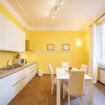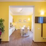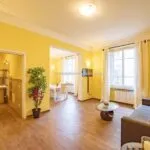 The apartments have undergone recent renovations and are in outstanding condition: the ceilings are decorated with extremely light plaster, and the floors are paved with grès to give the appearance of parquet flooring. Because the walls in both flats have been painted yellow, they feel warm and cosy.