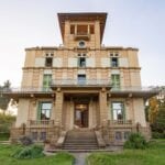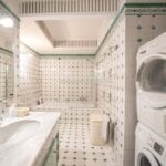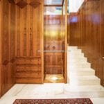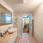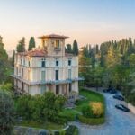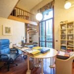 The apartment has a surface area of 365 sqm – 3,927 sqft with 5 bedrooms and 4 bathrooms and is located on the two lowest floors of a Liberty-style period villa set on the heights above Florence. From the stately external staircase, one arrives at a central entrance hall, and from here one goes to the spacious living room with balconies on the left. On the right, a hallway leads to the apartment’s small kitchen, the apartment’s three bedrooms (all with exits to the outdoor terraces) and the bathroom. The last room provides access via a spiral staircase to a loft where there is currently a bed but which could be used as a study. From the central room, another wooden staircase ascends to a second loft consisting of a walk-in closet and a private bathroom. Back at the entrance, an internal staircase descends to the basement where there is a large living room (also known as a taverna in Italian) with a fireplace, ideal as a play area, and a kitchen with a dining room, bathroom and bedroom.