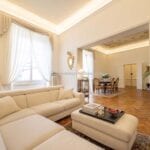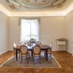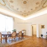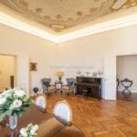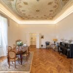 Recently, the flat has undergone meticulous and masterful renovations, with various improvements completed in 2022. Every effort has been made to preserve the original elements whenever possible, resulting in the revival of the parquet floors and frescoes, which have been thoroughly cleaned and preserved. The wooden fixtures have been restored and reinstated to their original state. Furthermore, the apartment has been modernized to meet 21st-century standards in terms of services and conveniences. The electrical system has been entirely replaced and certified, as has the air conditioning system, which is now equipped with five certified split units. The newly installed high-efficiency boiler includes a water storage and pumping system, ensuring consistent water pressure throughout the house. Additionally, all sanitary fixtures, taps, and fittings have been replaced with new ones, as well as domestic appliances. The lighting system incorporates adjustable-intensity LED spotlights in the corridor and living hall, accentuating the frescoes and architectural elements. The rooms are characterized by abundant natural light and excellent ventilation, owing to the impressive ceiling heights, exceeding 4 meters (13 feet) in the halls and rooms.