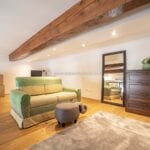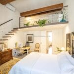 This elegant apartment spans a generous area of 274 square metres (2,948 square feet) and is situated on the second floor of the building, accessible via the condominium staircase. Upon entering the door, you are greeted by an inviting entrance hall featuring a small cloakroom. From here, one proceeds into the beautifully adorned reception hall and the kitchen with a dining area. Another entrance from the hall leads to a corridor that extends throughout the entire apartment. To the right, you will find an additional hall, while to the left, there is a private office space (or bedroom, if desired) with a mezzanine. Continuing along the corridor, the second section leads to the living room on the right, culminating in a bedroom with a private bathroom and a lofted walk-in wardrobe. On the left side, two doors open to a bedroom with a loft and a spacious lofted walk-in wardrobe (which could serve as another bedroom) with an adjoining toilet. Finally, at the end of the corridor, a last door grants access to the service bathroom.