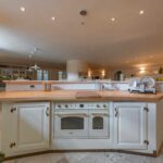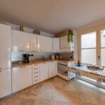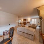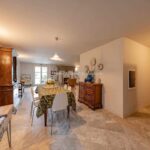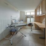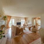 The basement, with independent access from the outside, features a spacious living area with an open-plan kitchen, a bedroom and a bathroom. This part of the house could be used as separate accommodation, potentially for a caretaker or the owners of the property.