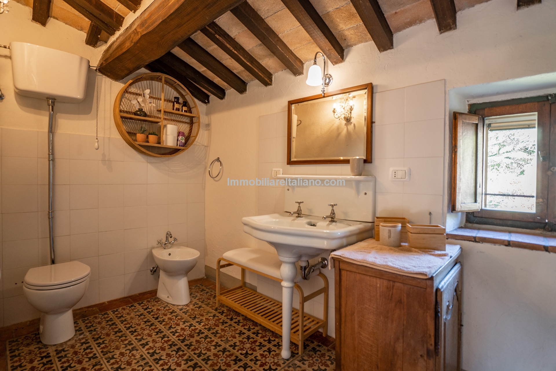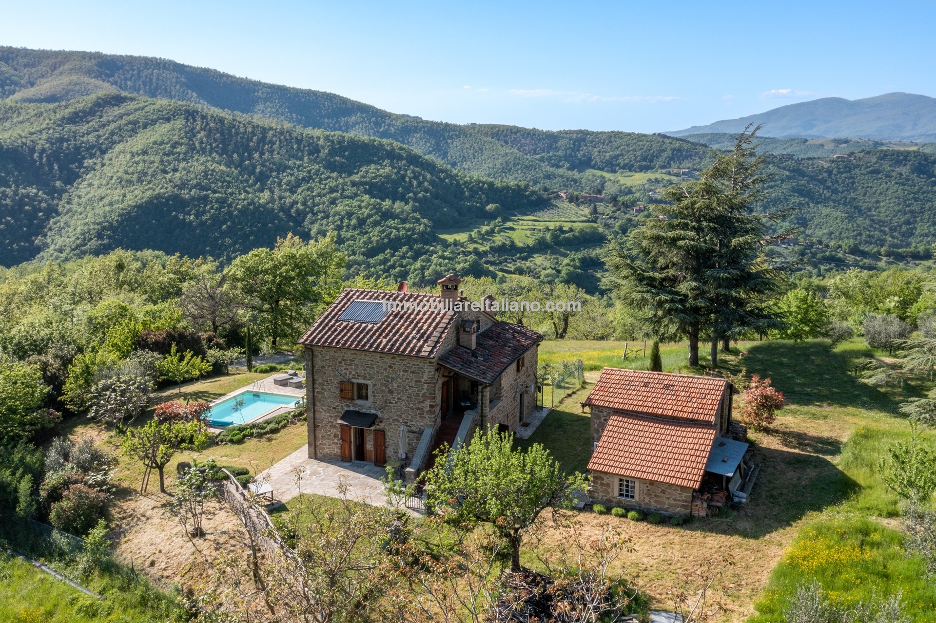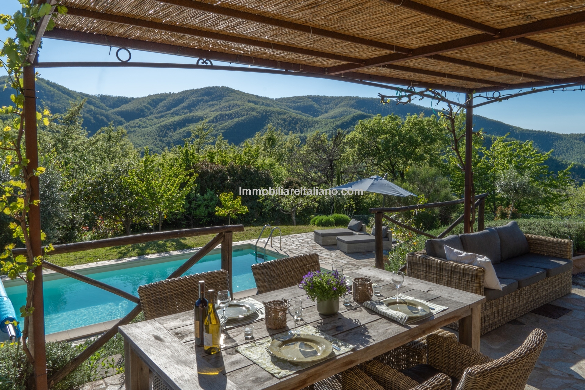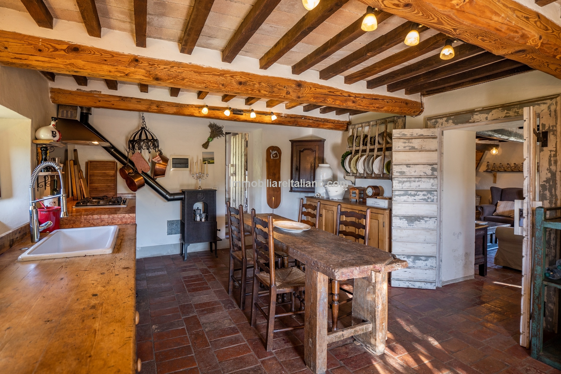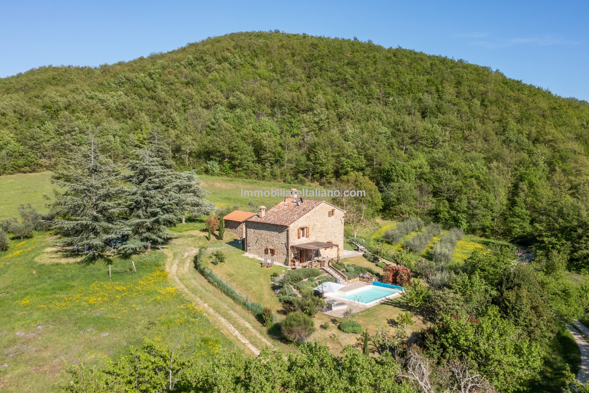 - MAIN FEATURES: Stone and brick walls, wooden beams, terracotta floors, wooden fixtures, original fireplaces, pizza oven, mature garden, swimming pool, stone-paved sunbathing area, olive trees, furniture included