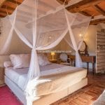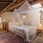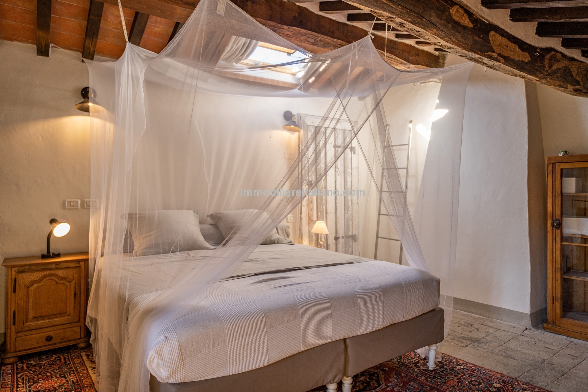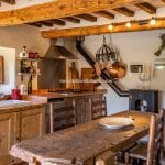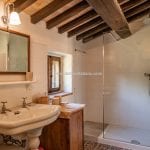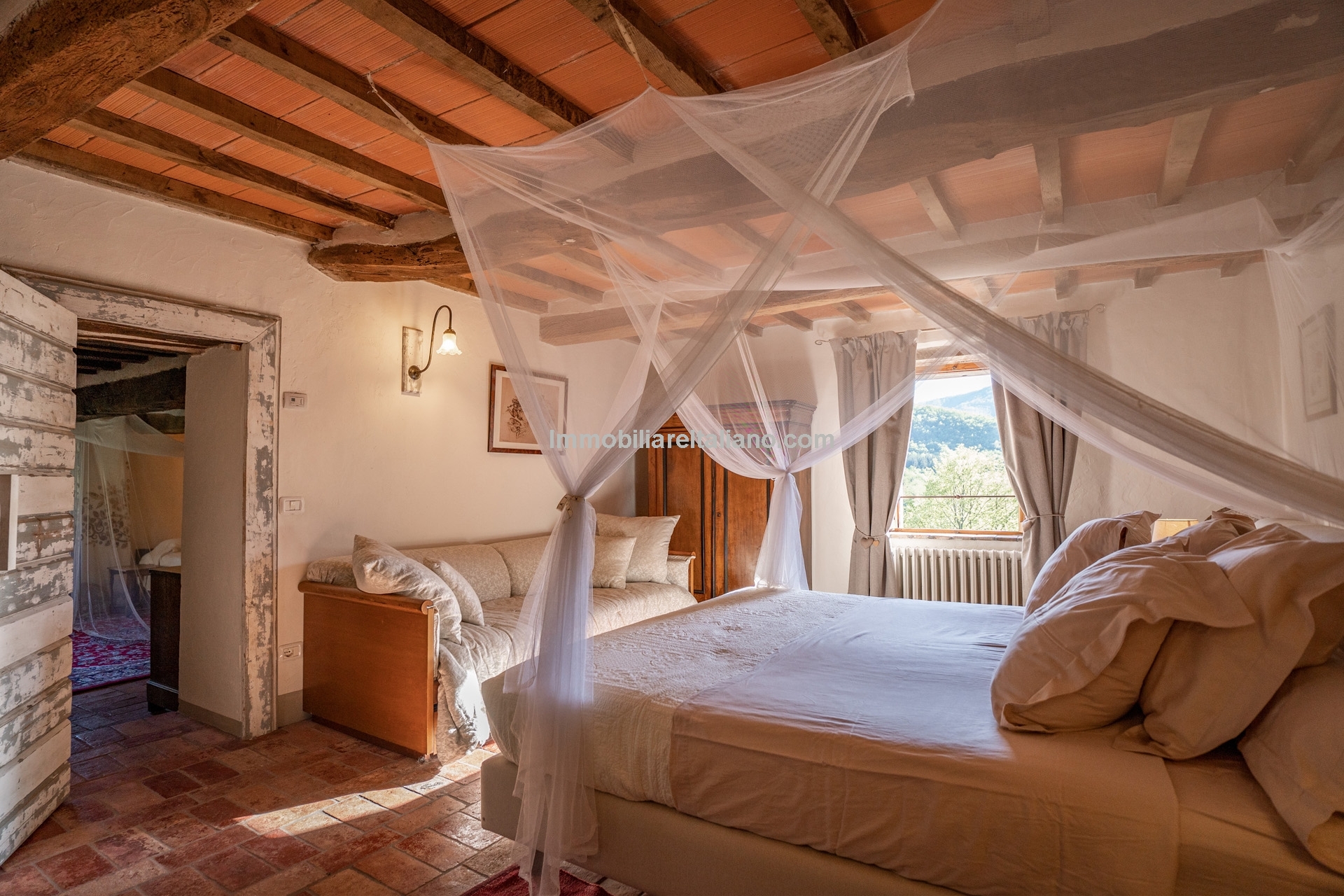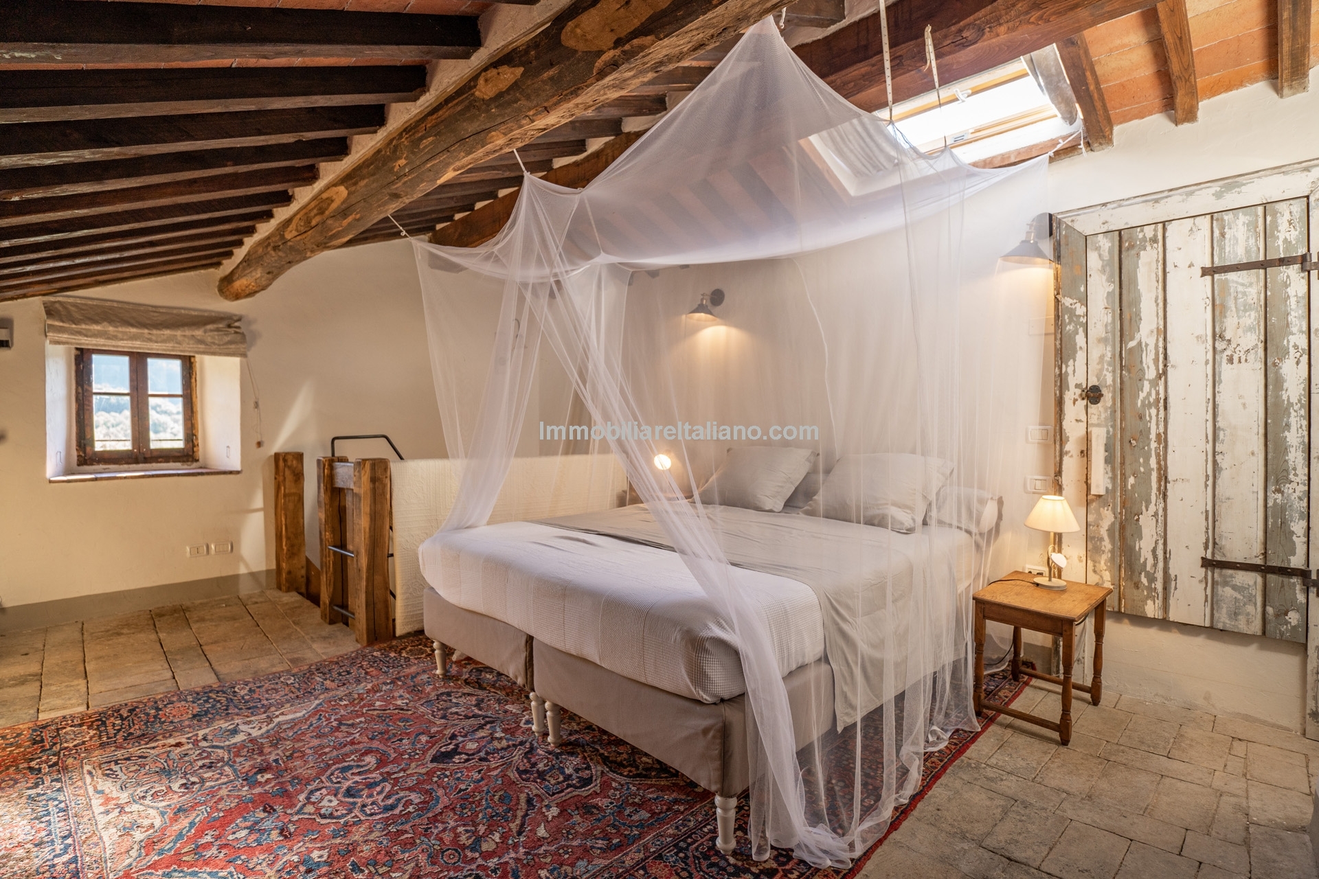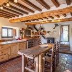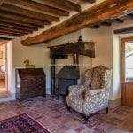The farmhouse (179 m² – 1,926 ft²) is arranged over two floors, featuring a warm and authentic interior. It includes two large bedrooms, two bathrooms, a spacious living room with a wood-burning fireplace, and an eat-in kitchen. Original materials such as terracotta floors, exposed wooden beams, and a restored bread oven highlight the home’s historic character while ensuring modern comfort. The period furniture, carefully selected to match the property’s style, is included in the sale.