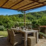 In the hills near Anghiari, Tuscany, this furnished Tuscan home for sale offers privacy, panoramic views, and traditional character. The renovated farmhouse includes a swimming pool, an outbuilding, and land with olive trees. Currently used as a successful holiday rental, it is equally well-suited as a private country residence for anyone seeking peace and space in the Tuscan countryside.