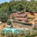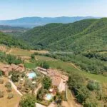 Historical property – Tuscan hamlet estate. Main villa, Agriturismo plus several buildings. Total of 50.1 hectares of land, gardens, olive grove. Two swimming pools. Further development potential.