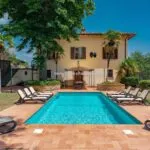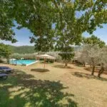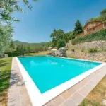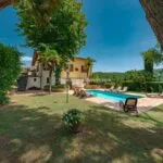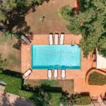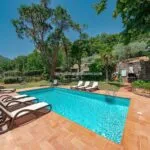 The villa has its own private 8 × 4 m swimming pool located in the walled courtyard (roughly 350 sqm, with garden). At the same time, the Agriturismo features a larger 15 × 7.5 m swimming pool used by guests and set slightly above the building, in front of the farm and at the centre of a 1,200-sqm garden that could also be used as an event venue. Adjacent to the Agriturismo, going towards the BBQ area, is a convenient paved apron overlooking the surrounding Chianti hills, which is very suitable for events and meetings.