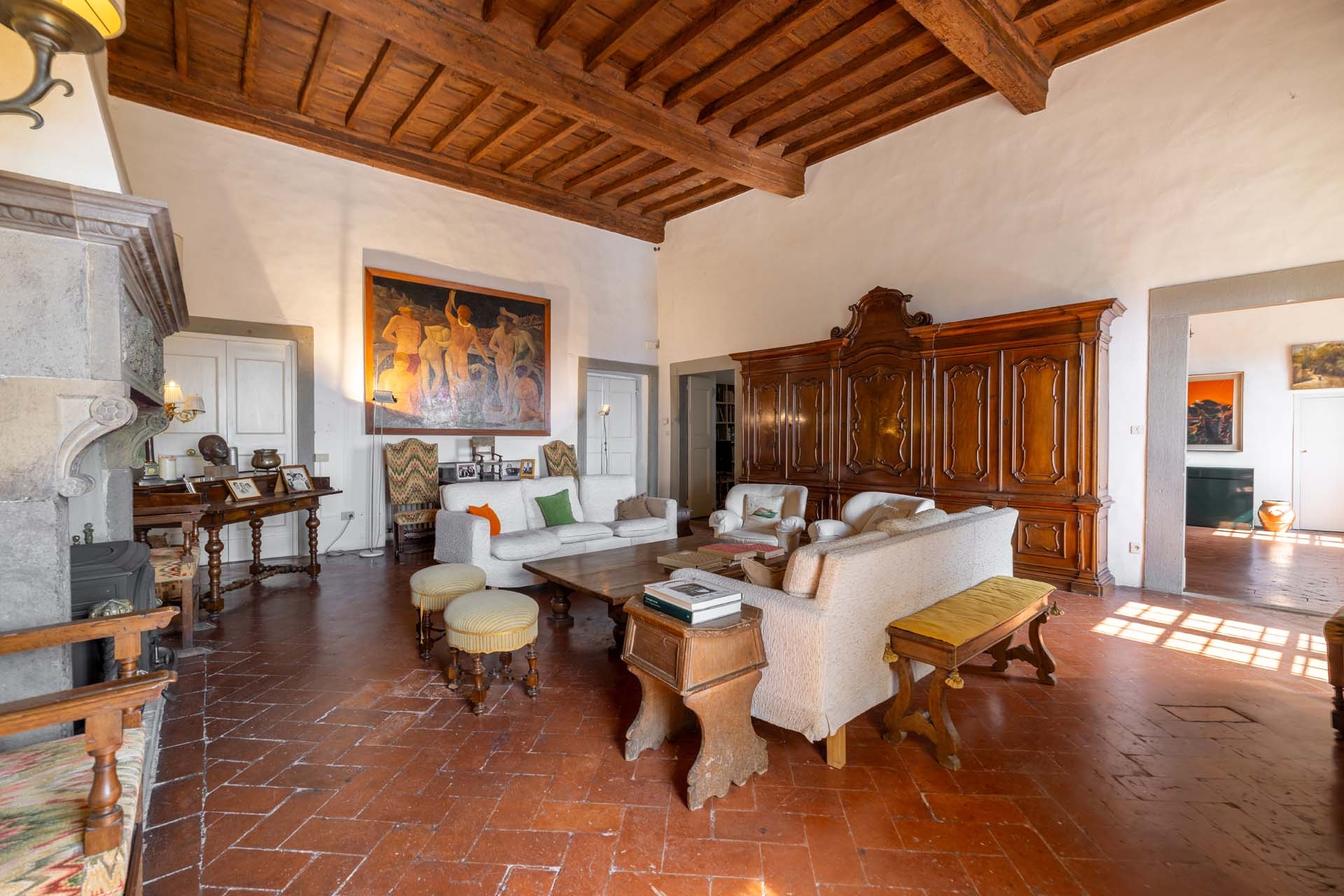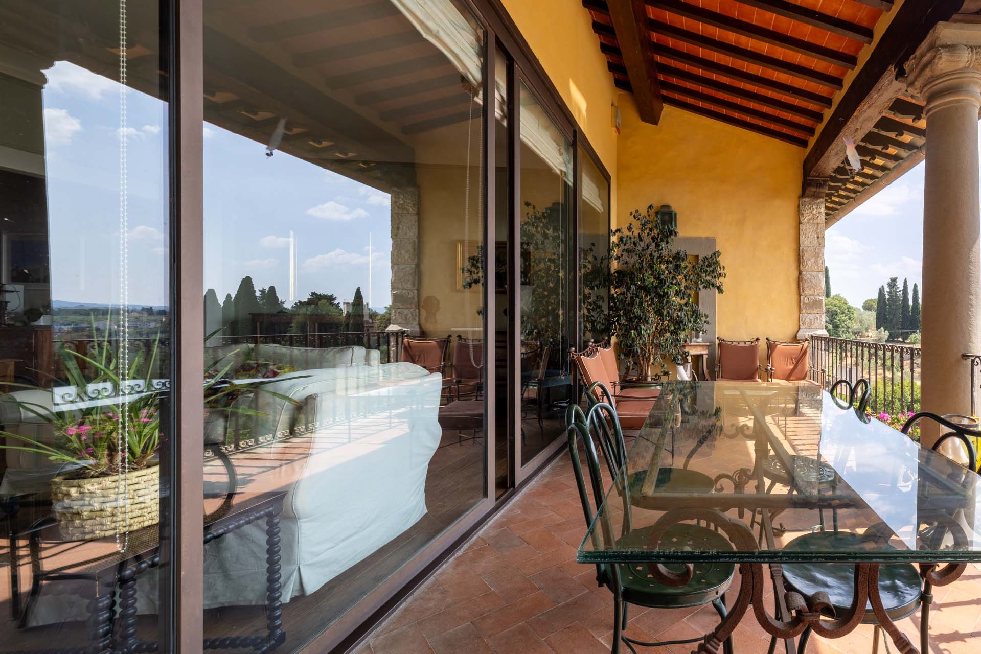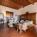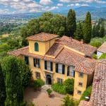 This historic 15th-century villa is a luxury home for sale in Florence, Italy, just 6 kilometers from the city center and close to the town of Bagno a Ripoli. Positioned in the hills south of Florence, the property offers privacy and countryside surroundings while remaining within a 15-minute drive of the historic city center.