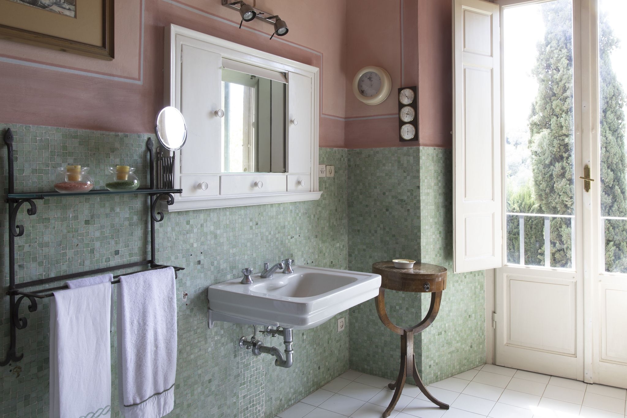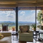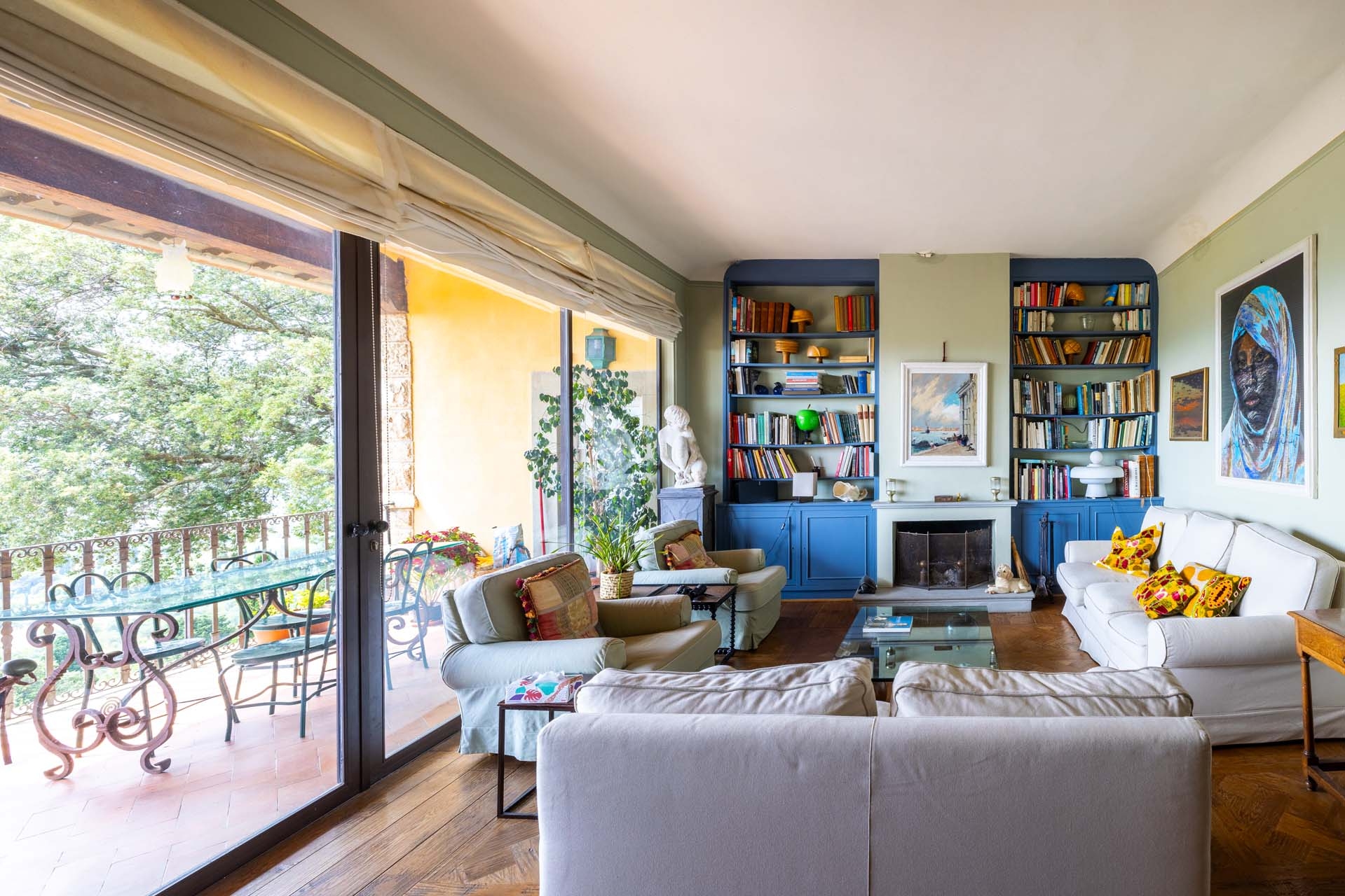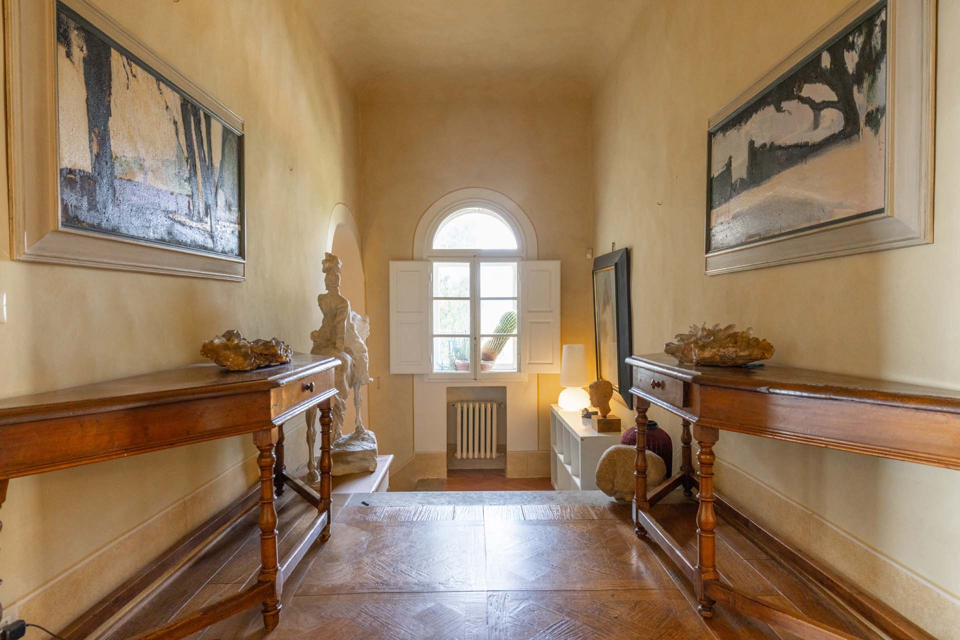 The villa is surrounded by 2.2 hectares of land, including a 1,990-square-meter terraced garden enclosed by stone walls for privacy. A cypress-lined driveway leads to ample parking space.