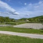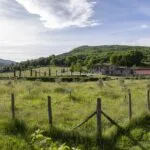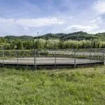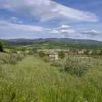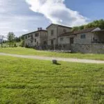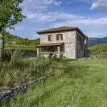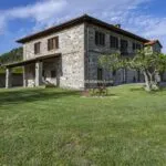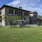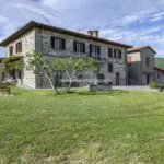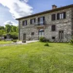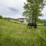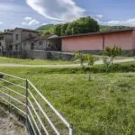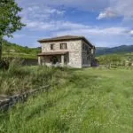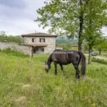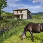 This horse property for sale is located in the Casentino Valley, near the towns of Arezzo and Bibbiena in Tuscany. The small farm covers 6.4 hectares (15.8 acres) of mostly flat, fenced land and includes a traditional stone farmhouse, horse stables, olive grove, and a small vineyard.