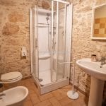A third unit (88 sqm) is configured for bed and breakfast use, with a living area and kitchenette leading to three bedrooms, each with a private bathroom. This layout supports guest accommodation and aligns with the current B&B business model. A fourth section (90 sqm) has been structurally restored with systems installed but remains unfurnished, offering flexibility for further guest accommodation, owner’s quarters, or expansion of the hospitality business.