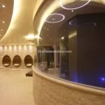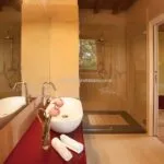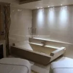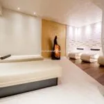 Subterranean is a big (almost 500 sqm – 5,380 sqft) spa centre with pools, saunas, Turkish baths, hydrotherapeutic showers, a rest room, and nine massage cabins. A secondary stairway then goes back to the courtyard, which is now utilised for sunbathing in the summer and has a convenient outdoor shower.