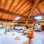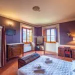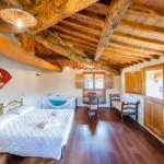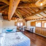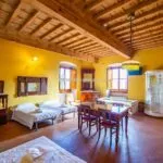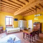 The villa was entirely renovated between 2012 and 2015. The building’s original finishes have been carefully preserved: while the rooms on the mezzanine and attic feature original terracotta floors, wooden beams and brick arches, the rooms on the piano nobile (once inhabited by the lords) are spacious and bright, with refined elements and soft colours that make the area warm and welcoming. The dovecote, in particular, has been converted into a delightful suite with large windows overlooking the surrounding countryside.