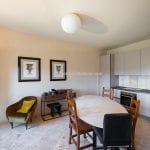 Apt. H: living room, kitchenette, two bedrooms and bathroom