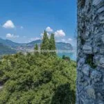 Next to the two terraces, the castle is surrounded by 5,500 sqm of land covered in a gently-sloped garden with direct view over the lake.