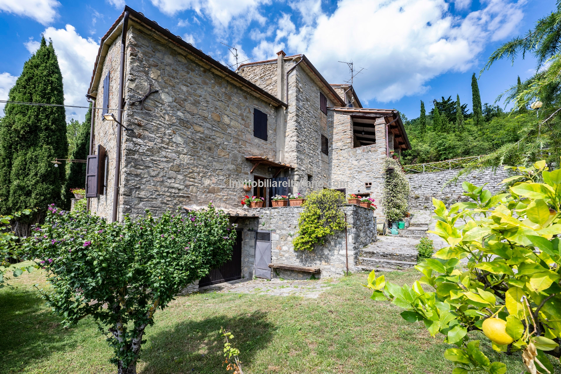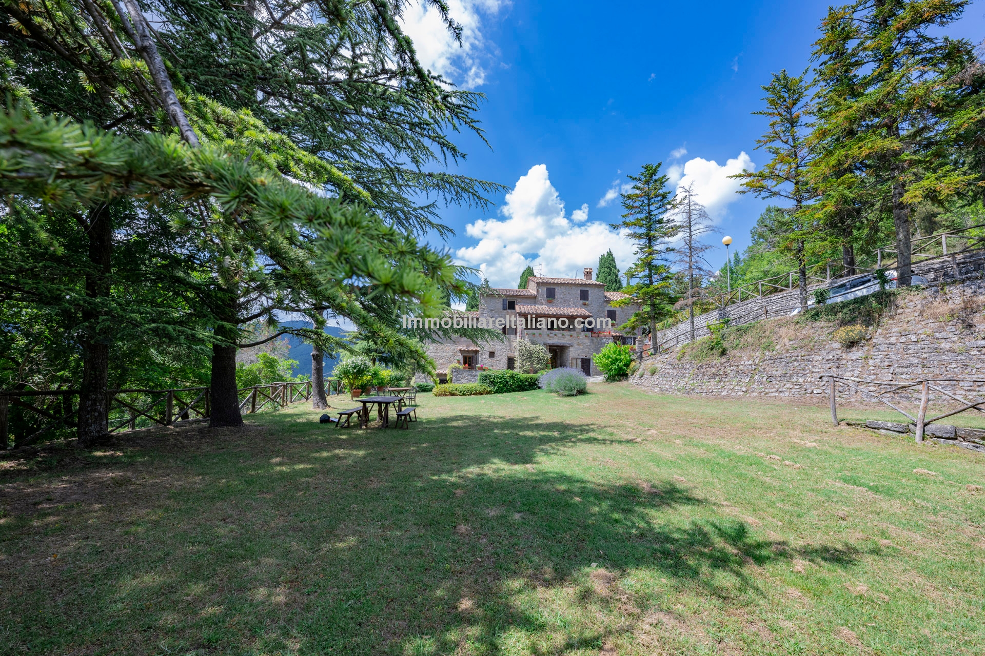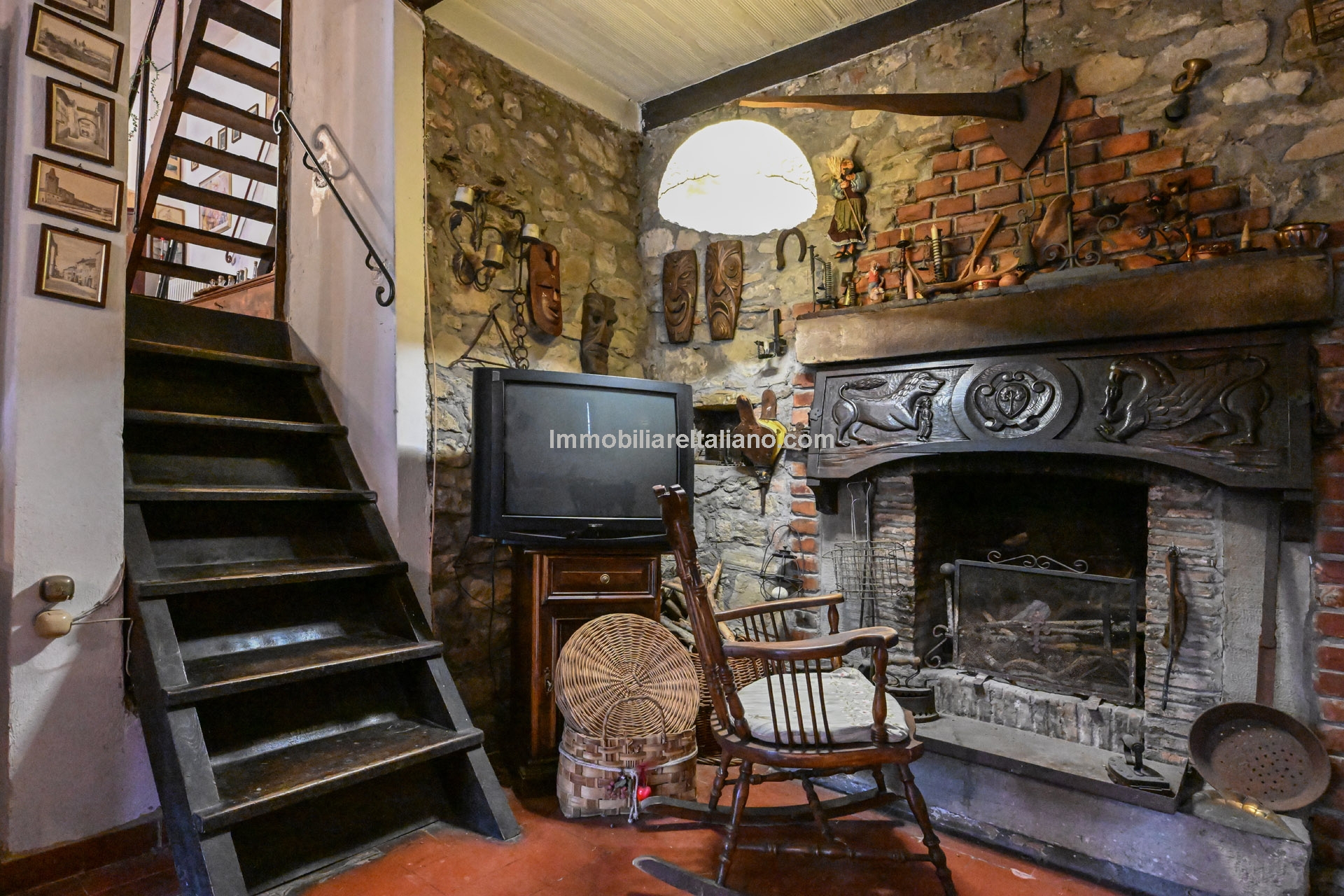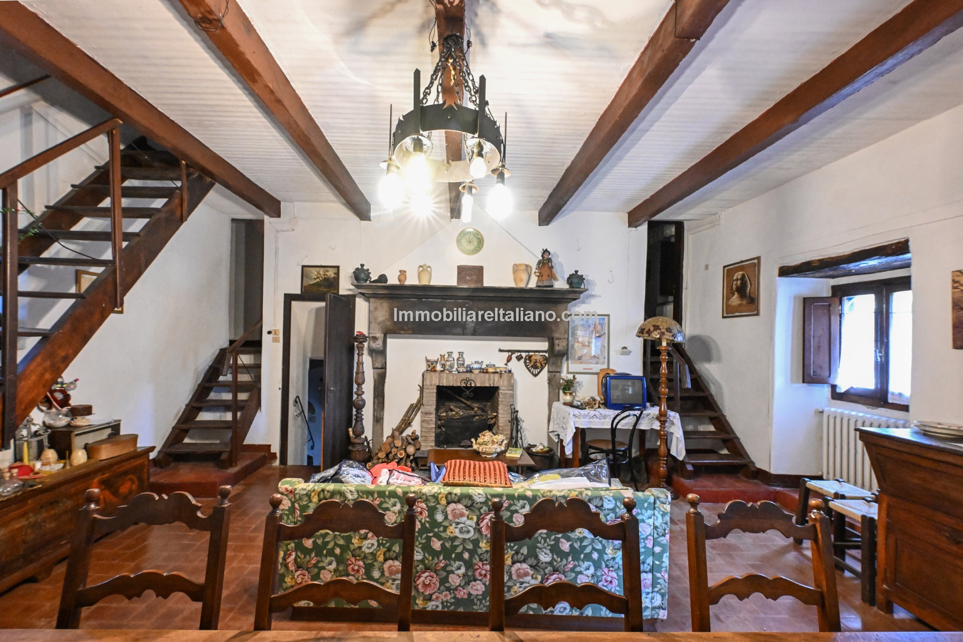 - MAIN FEATURES: Stone and brick walls, terracotta floors, wooden beams, vaulted ceilings, fireplace, loggia, terraced garden, olive trees