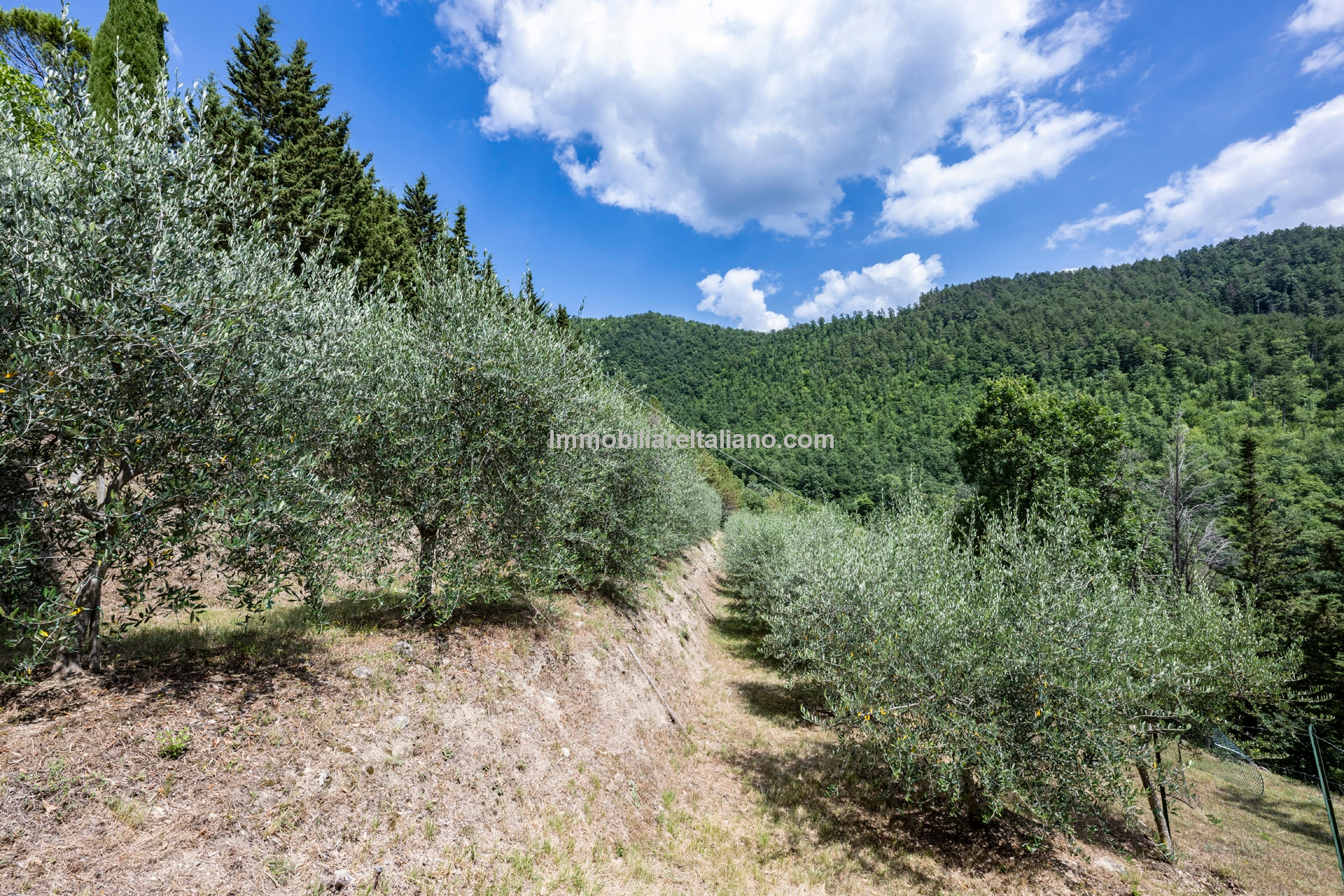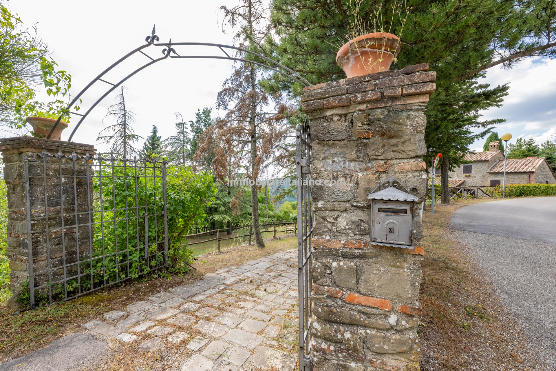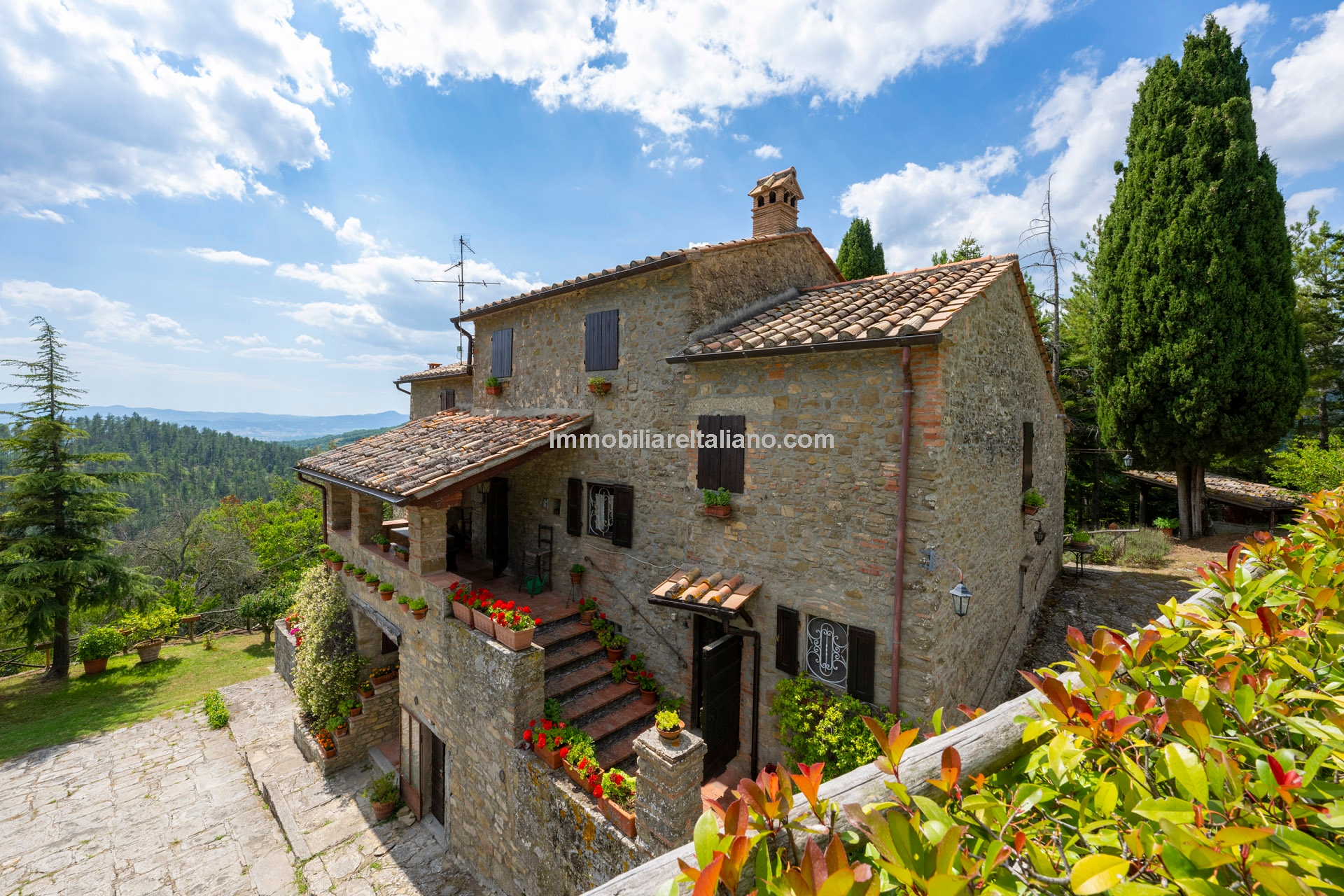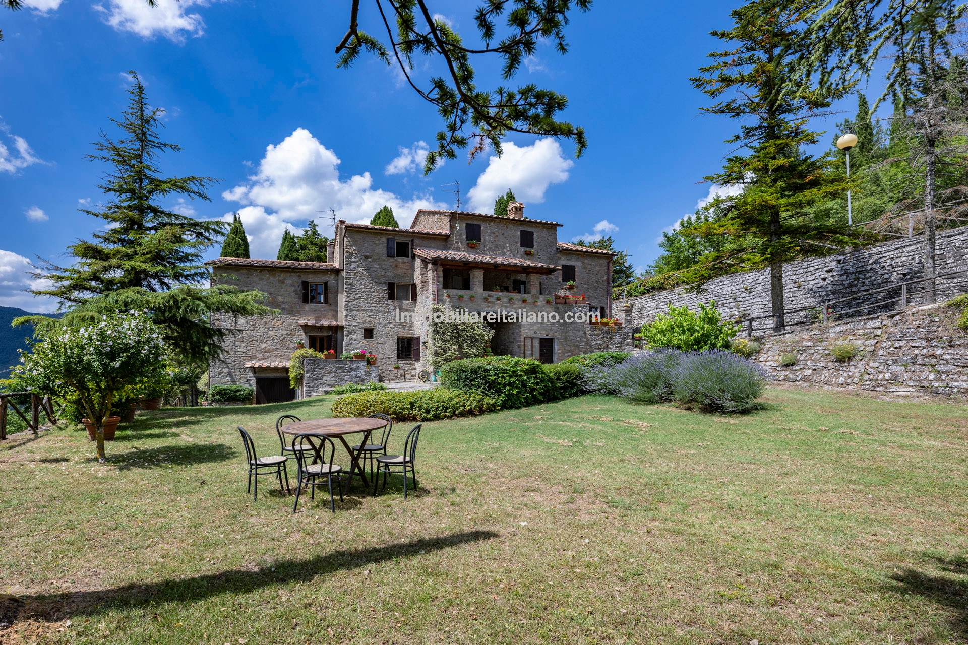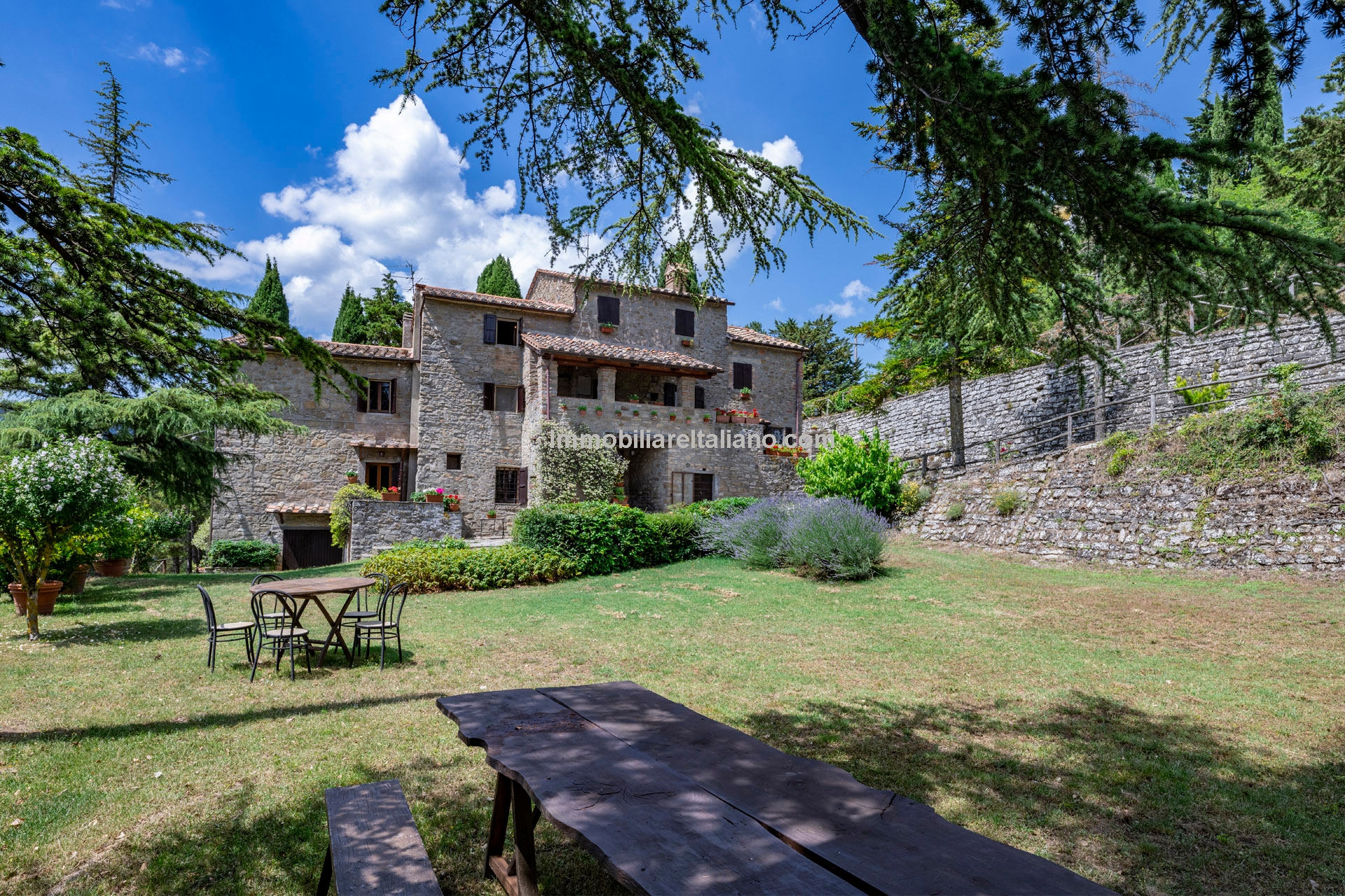 - MAIN FEATURES: Stone and brick walls, terracotta floors, wooden beams, vaulted ceilings, fireplace, loggia, terraced garden, olive trees