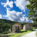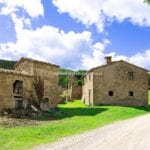Italian real estate development opportunity in Umbria near Umbertide and Città di Castello which will be of interest to developers, investors, and self-builders. Rural hamlet with 4 buildings (possible for 10 bedrooms), large outbuilding, 36.8 hectares (90.0 acres) of wood and arable land, dam, olive grove and former vineyard.