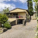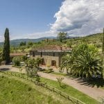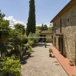 Tuscan farmhouse for sale near Arezzo. Guesthouse, a landscaped garden, a 3.3 ha olive grove, and a hobby vineyard. Five bedrooms in total. Ideal private residence or second home.