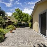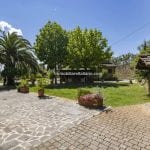 Outside, the landscaped 1,800 m² garden features a gravel driveway and parking area. The land includes a small hobby vineyard (3,000 m²) and a 3.3-hectare olive grove.