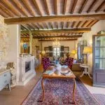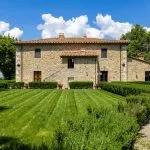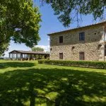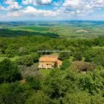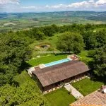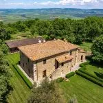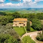 Located in the heart of Tuscany’s Val d’Orcia region, this Italian farmhouse property offers a panoramic setting just outside a historic medieval village. Fully restored in 2016, the farmhouse is currently operating as a B&B with five bedrooms, but it could also serve as a prestige private residence. The property includes 10.7 hectares of land with garden space, a small olive grove, and woodland.