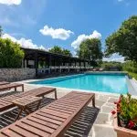 - MAIN FEATURES: Stone and brick walls, terracotta floors, wooden beams, brick arches, large pergola, swimming pool, room for a fitness area, well-maintained garden, olive trees