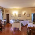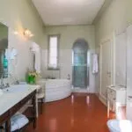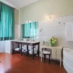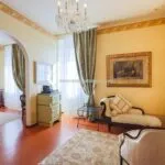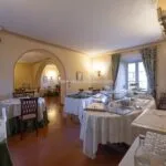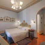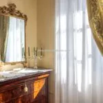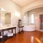 Common areas are equally refined, featuring precious blown-glass chandeliers, medieval stone arches, trompe-l’œil, finely crafted friezes, polished Tuscan terracotta floors, and original pietra serena fireplaces. The furnishings include fine antiques and luxurious fabrics, with walls and ceilings decorated by esteemed Tuscan craftsmen. Independent, zonal adjustable heating ensures comfort throughout.