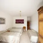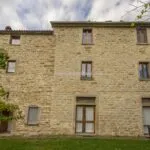 The rooms, while simple, are comfortably equipped for guests participating in the numerous courses held here. The main house entered via stone steps, includes a guest breakfast room, bathroom, living room with a fireplace, an industrial kitchen, and storage areas. The upper floor houses bedrooms, some with shared facilities and others with private balconies. One larger room is currently divided into two but can be reverted to its original size.
