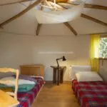 A unique, irregularly shaped pool, constructed in 2005 with chlorine purification, complements the site. There are also three yurts with an outdoor bathroom, authorized for camping.