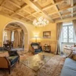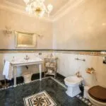 - MAIN FEATURES: Original terracotta and marble floors, wooden beams, coffered ceilings, frescoed walls, mouldings, faux architectures, marble fireplaces, ample windows, Italian garden, swimming pool, sea view belvedere, alarm system with video surveillance, elevator, garage