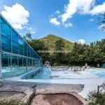 The resort is set in a private park of 8.4 hectares with gardens all around the buildings. The complex includes several swimming pools, including one with a Kneipp path, a sunbathing area for the guests, large shaded relaxation areas and a large gravel car park where guests can leave their cars in peace.
