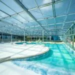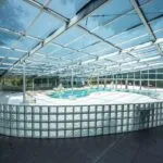 The restaurant (130 sqm – 1,399 sqft), located next to the outdoor Kneipp path, consists of a large dining room with bar corner, professional kitchen and large canopy (120 sqm – 1,291 sqft) that can be used in summer as an additional dining area.
