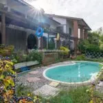 The villa is structurally sound but would benefit from updates to finishes and systems to meet modern standards. An outbuilding of 124 sqm (1,334 sqft) includes three garages, a boiler room, a water system, and storage areas with a shed in front.