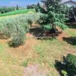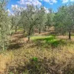 The surrounding 5,200 sqm garden includes 95 productive olive trees and an irrigation system. Additional structures include an 80 sqm agricultural warehouse suitable for storage or conversion to a wine cellar, a 30 sqm stable, and a 35 sqm, both of which require renovation.