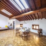 The building dates back to the 16th century and is in excellent structural condition but needs some works to update and restore and valorize its finishes. The original features are still present but are in some cases damaged or in bad shape: on the ground floor, there Is a beautiful frescoed hall and the original vaulted cellar. The residential sections feature parquet floors and wooden beams to the ceilings.