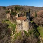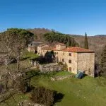 Located in the Casentino mountains of Tuscany, this extensive estate offers 112.2 hectares (277.2 acres) of land in Italy for sale, along with a rural hamlet in need of complete restoration. The property is set in a quiet, panoramic location near Talla, with direct views toward Mount Penna and the La Verna sanctuary. The buildings, covering over 2,200 sqm, stand on a rocky outcrop between two streams and include the remains of a historic settlement with origins dating back to the 7th century. The oldest structure on site is a small church with apparent Byzantine architectural influence, once part of a key route connecting Ravenna and Rome.