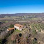 Approached via an unpaved road, this large farmhouse is comprised of a main building and several outbuildings including a drying barn, stables, and storage facilities. The farmhouse itself, spread across 20 rooms with the possibility of up to 10 bedrooms and 6 bathrooms, features traditional stone walls, wooden beams, original terracotta flooring, and multiple fireplaces. These elements underscore the property’s rustic charm and authentic Italian architectural heritage.