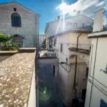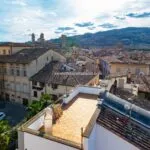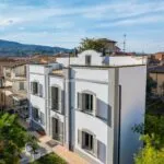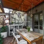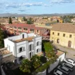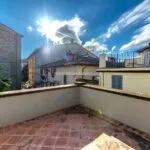 Ascending to the first floor, there are two double bedrooms, one with a spacious en-suite bathroom and a 20 sqm terrace offering views of the historic centre’s rooftops. A dressing room and a second bathroom separate these bedrooms.