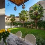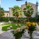 Villa delle Palme is a splendid large luxury villa, boasting an elegant Liberty Style facade that blends seamlessly with its surroundings, offering unparalleled privacy while being just a short walk from the vibrant heart of Città di Castello. This property, exceeding 400 sqm in size, is nestled within a secluded garden, encased by tall walls. Entry is through a gate, leading up a stone staircase flanked by majestic palm trees that enhance the symmetrical beauty of its exterior. Dating from the 1920s, it stands elevated behind high walls that sequester it from the tranquil Piazza San Francesco.