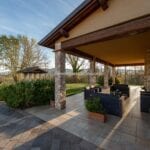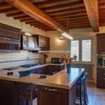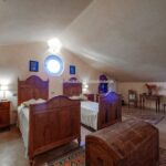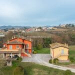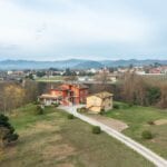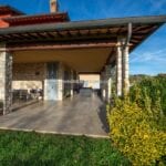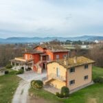 The villa’s finishes are of high quality, featuring parquet and stone flooring, ceilings adorned with elegant wooden beams and traditional tiles, modern fixtures with shatterproof glass, armoured doors, automated gates, and garage doors. The heating system is pellet-fed, complementing the designer radiators and stylish decor, with hydro-massage bathtubs, hydro-emotional showers, and comprehensive alarm and video surveillance systems in place.