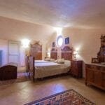 The villa is enveloped by a 19,300 m2 park-like garden, landscaped and predominantly level, adorned with fruit trees and an irrigation system. A terracotta and stone-paved area encircles the villa, and entry is secured by an automated iron gate opening onto a classic gravel driveway, making this large villa for sale an epitome of elegance and charm in the heart of Umbria.