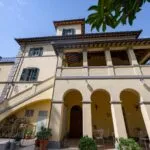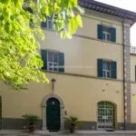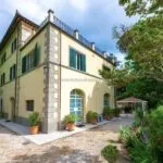 The exterior is typical of villas in the area, plastered in yellow and softened by wooden shutters in excellent condition, with the trim and corners of the building in local pietra serena stone.