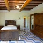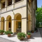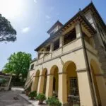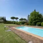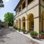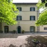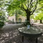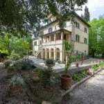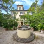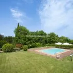 In a small hamlet about 20 minutes from Perugia, in a quiet residential area is this historic large villa with park garden and pool for sale. The property has a surface area of about 650 square metres and is in excellent condition. It has been divided into eight independent units to be used for guests (9 bedrooms) but could easily be reconstituted into a single private home with a little work. A 6,800 sqm park garden with shade trees surrounds the villa.